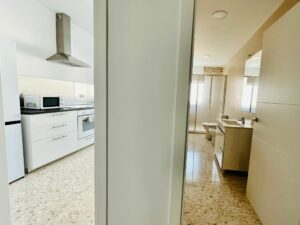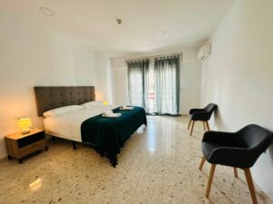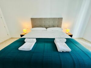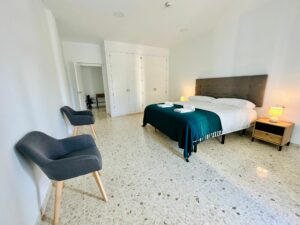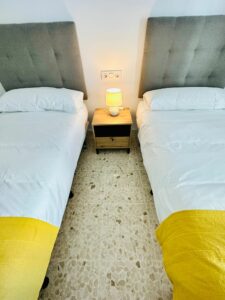 El apartamento dispone de una habitación con cama de matrimonio, una habitación con tres camas individuales y un sofá-cama en la estancia principal.